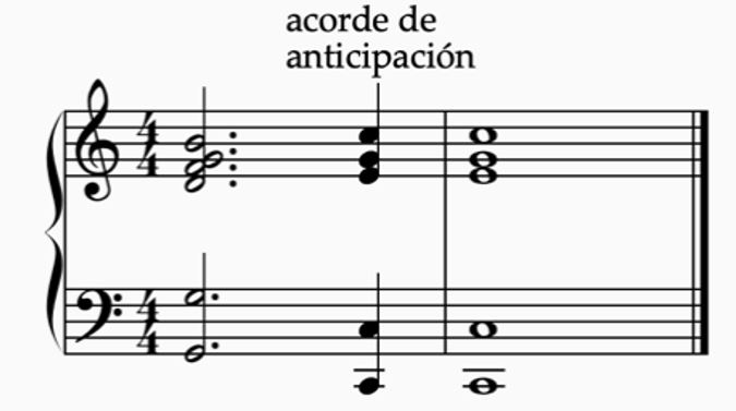 ACORDE DE ANTICIPACIÓN ACORDE DE ANTICIPACIÓN: ACORDE DE ADORNO situado en parte débil que anticipa el ACORDE ESTRUCTURAL que le sigue.