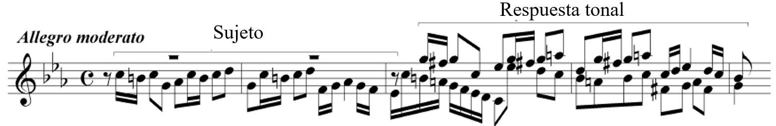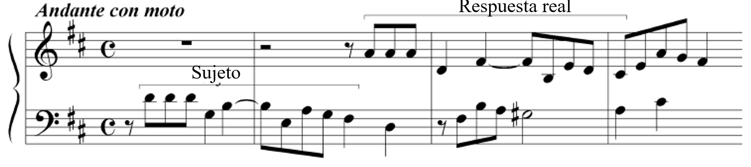 1. En una Fuga, la respuesta es la 2ª presentación del SUJETO. Puede ser real (transportada a la quinta justa superior del sujeto) o tonal (igual que la respuesta real pero con ciertas mutaciones o modificaciones).