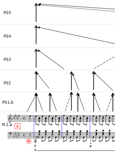 PROCESO DE SÍNTESIS: Acción por la que se produce un agrupamiento de elementos rítmicos, armónicos o melódicos. Sintetizar consiste en resumir mediante agrupamientos la información analizada en cada NIVEL. Al agrupar un cierto número de acordes estamos queriendo reducir o simplificar este número para facilitar el proceso de aprendizaje tanto en lo que se refiere a la técnica interpretativa como al ANÁLISIS del lenguaje musical.